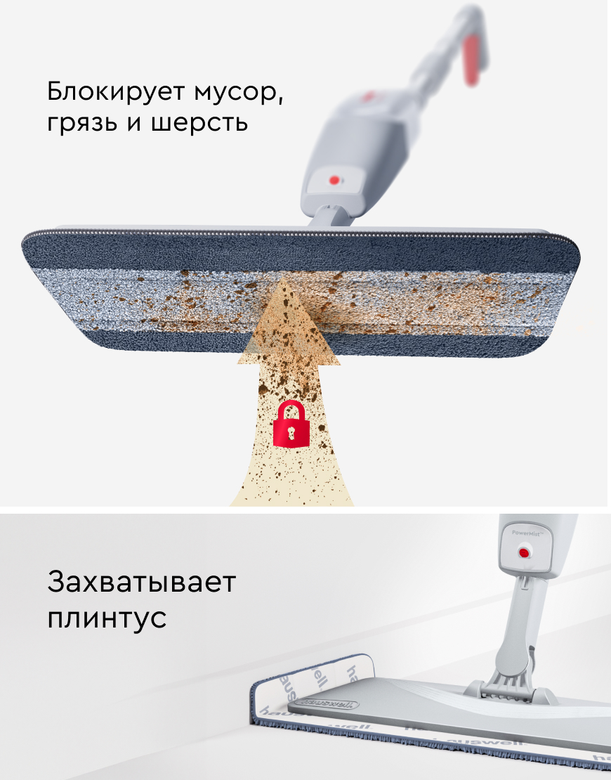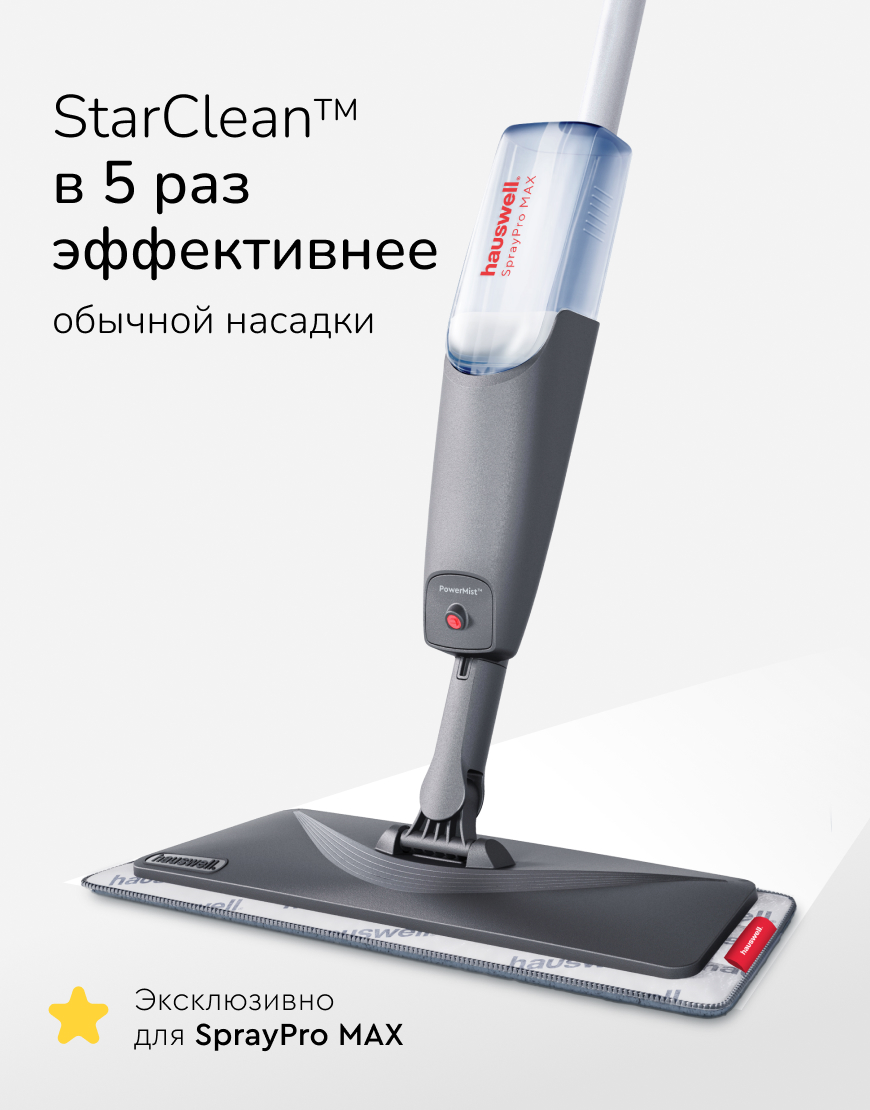Не любите долгую уборку? Насадка для швабры со распылителем Hauswell сокращает время на этот неприятный процесс. Она обеспечивает быструю и эффективную уборку, благодаря уникальному составу: насадка состоит из двух материалов, мягкие вспененные волокна по центру насадки задерживают грязь и блокируют ее внутри, крученые волокна по бокам обеспечивают идеальное скольжение и оттирание грязи. Обладают высокой впитываемостью и не оставляют разводов, а также отлично справляются с уборкой волос и шерсти.