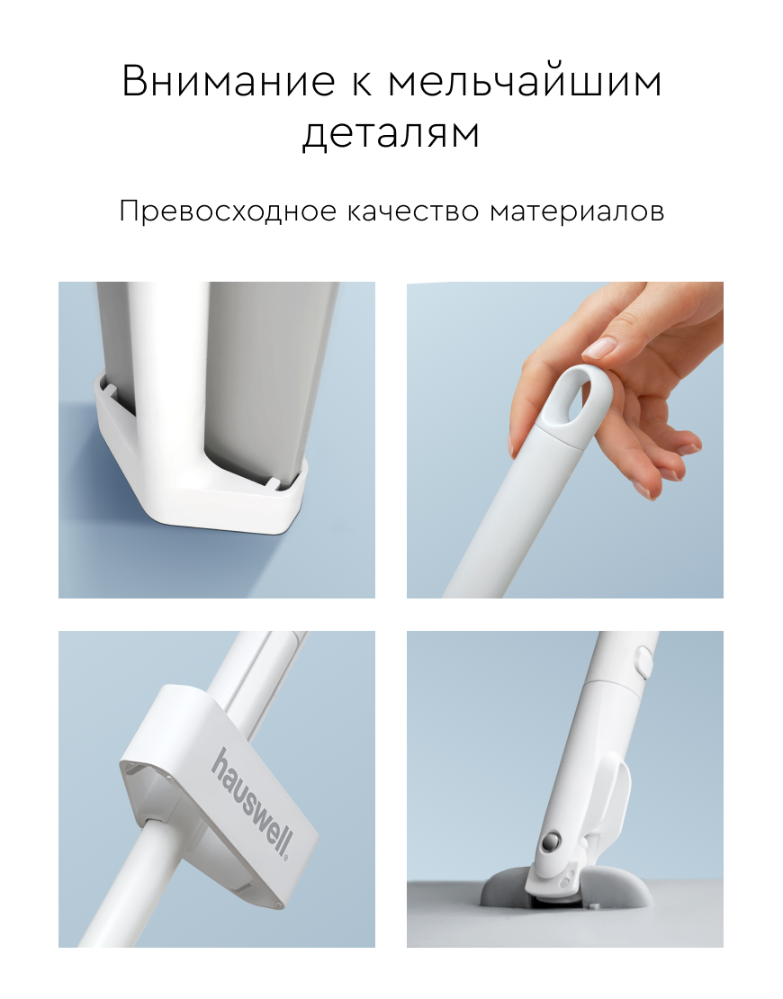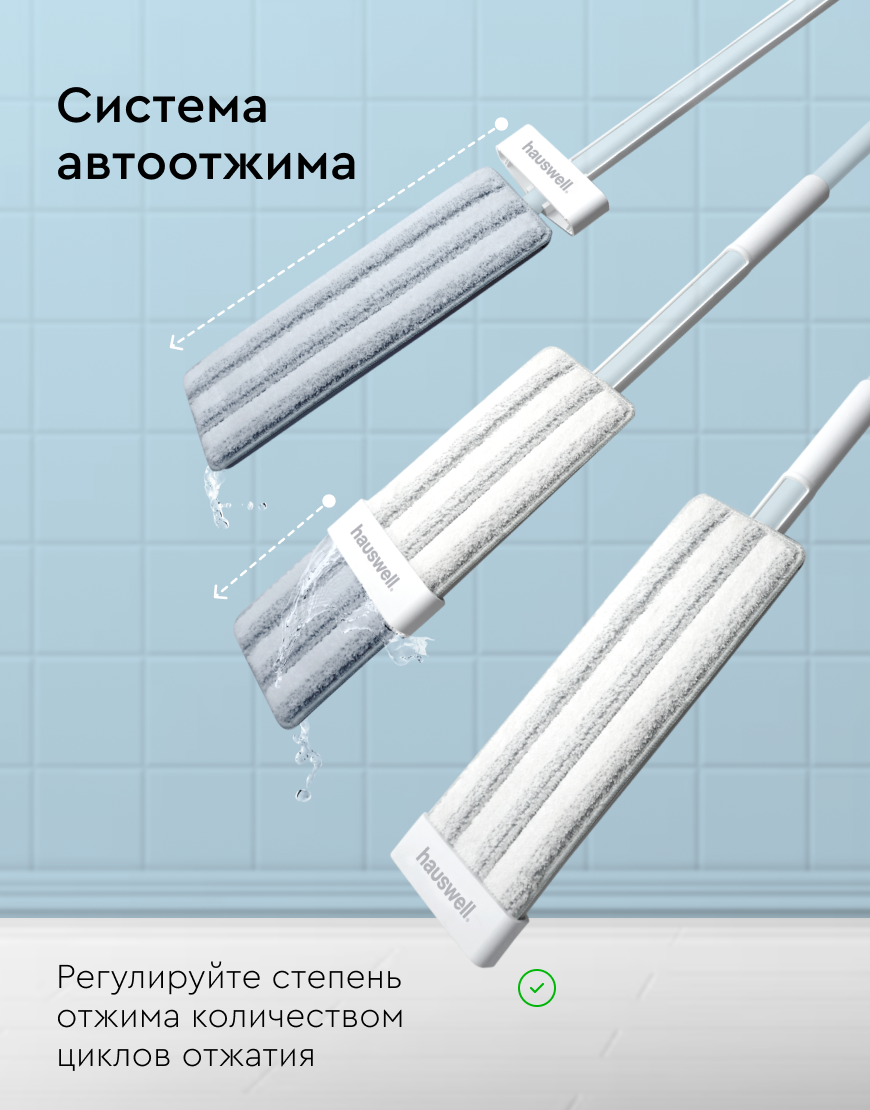 Швабра с отжимом и ведром Hauswell получила заслуженную популярность в России благодаря уникальному дизайну, высокопрочным материалам системы отжима и износостойким насадкам с высокотехнологичной фиброй, которая впитывает и убирает все виды бытовых загрязнений.