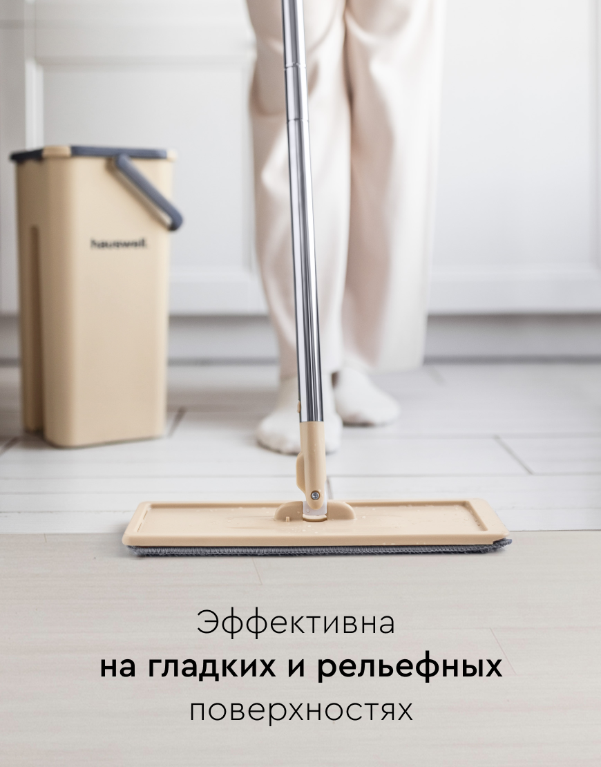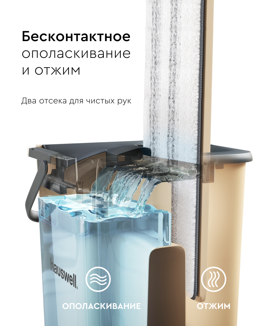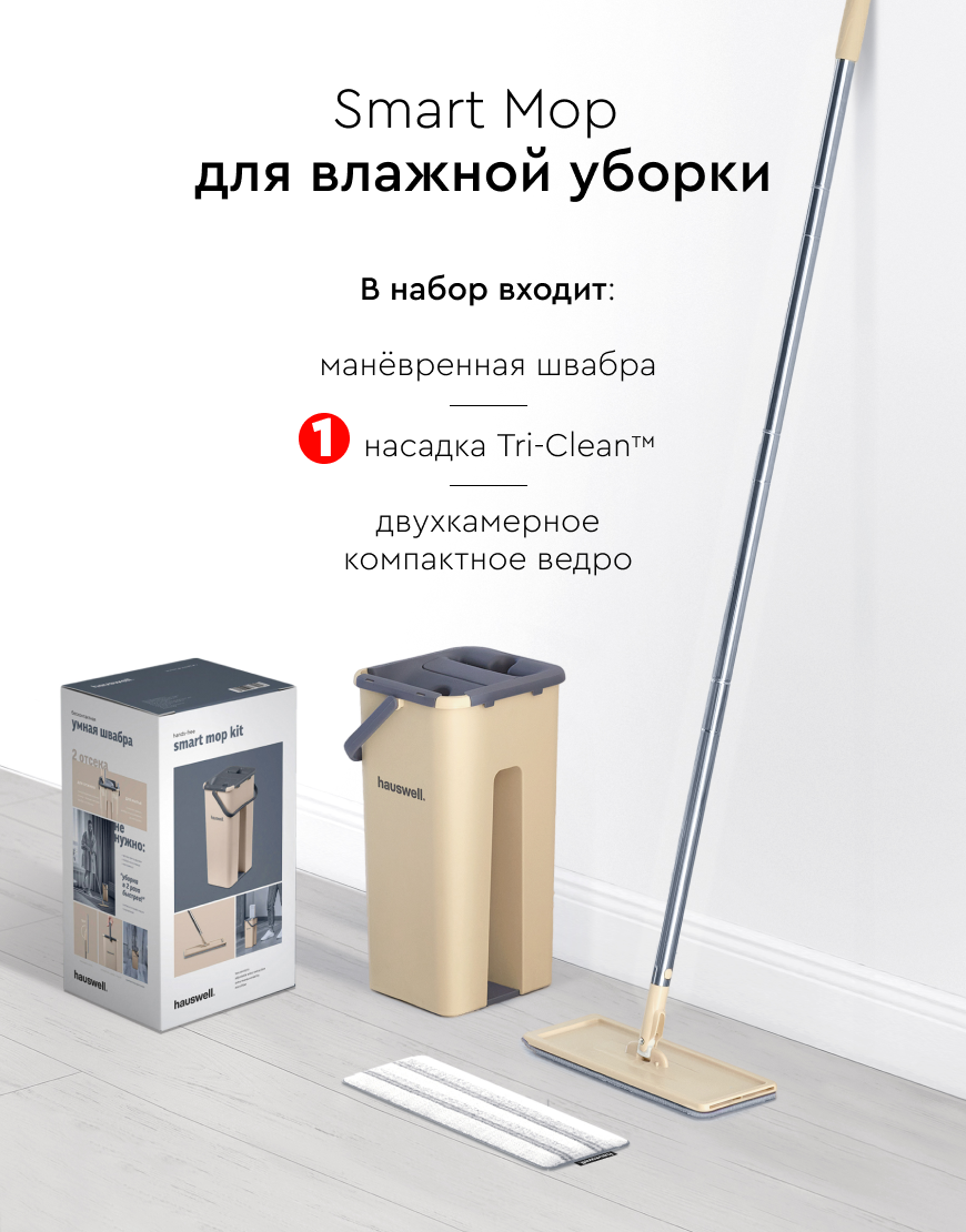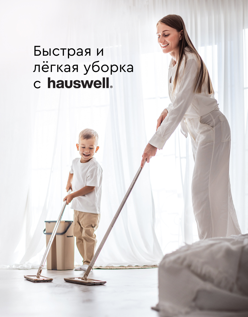 Бренд Hauswell получил заслуженную популярность в России благодаря уникальному дизайну, высокопрочным материалам системы отжима и износостойким насадкам с высокотехнологичной микрофиброй Tri-Clean, которая впитывает и убирает все виды бытовых загрязнений.