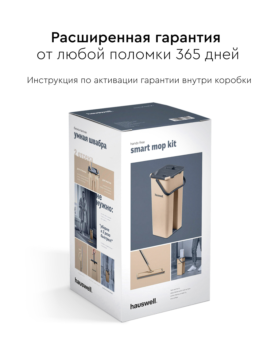 Гарантия 365 дней – это залог надежности и высокого качества нашей продукции! Набор Hauswell состоит из умной самоочищающейся швабры для мытья полов и окон и профессионального двухкамерного ведра. Комплект выполнен из качественного пластика и нержавеющей стали.