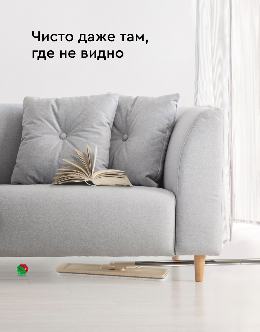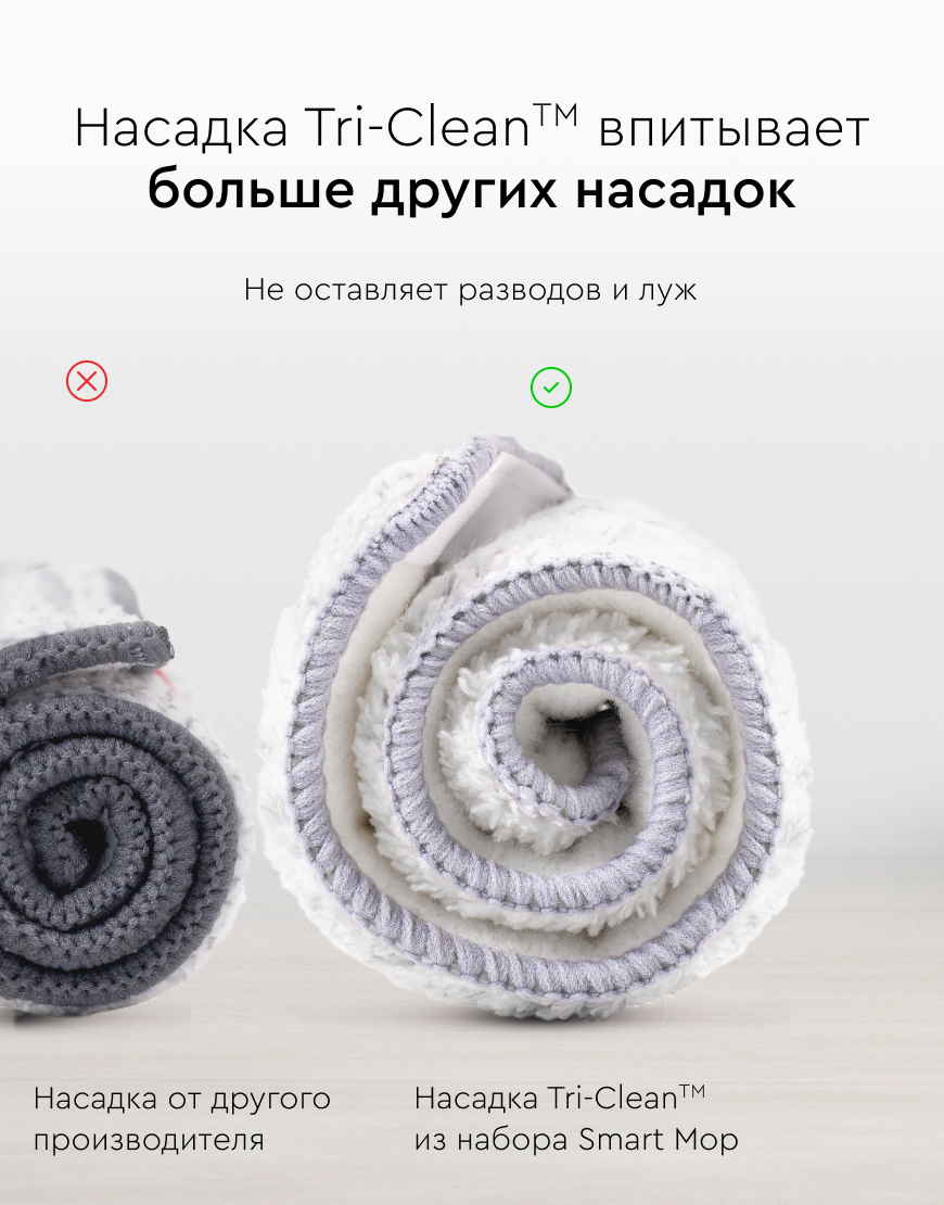 Насадка из микрофибры надежно крепится к плоскому прямоугольному основанию на липучки. Она удерживает воду до 75% лучше, чем хлопок. Насадки можно стирать в стиральной машине при щадящих режимах (30-40 градусов и низких оборотах, без применения отбеливающих средств) и рекомендуется менять каждые 3 месяца.